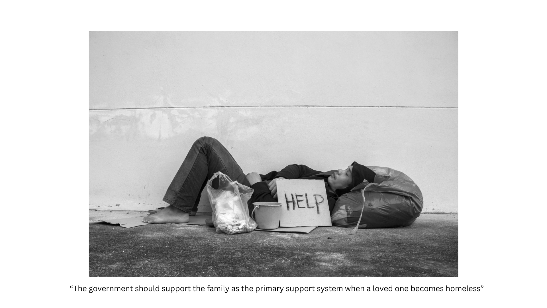 Bottom line: The government should support the family as the primary support system when a loved one becomes homeless. Policies should strengthen (and not undermine) the family’s authority and capacity to help their relatives.